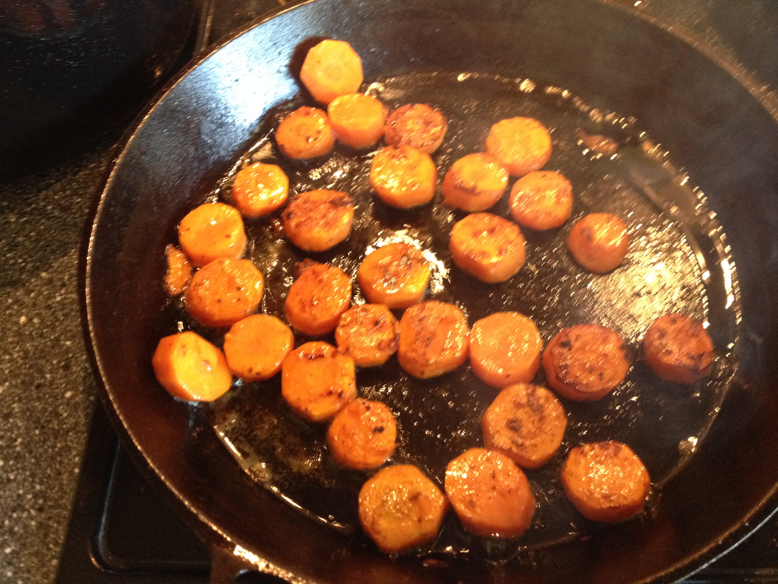 (rapsolje for steking er greit) og smør. Ta stekingen posjonsvis, så har du full kontroll. Ha det over i ei stor gryte som du kan sette i stekovnen (Med tilhørende lokk) Her bruker jeg ei stor emaljert jerngryte, på Berkåk er Mieles gourmetgryte perfekt til store porsjoner. Stekovnen kan du sette på med over/undervarme, ca 150 °C. - Et par store gulerøtter skjæres opp i cm-skiver og 2 gule løker i båter. Stekes i panna i olje hver for seg, la gulerotskiveneene