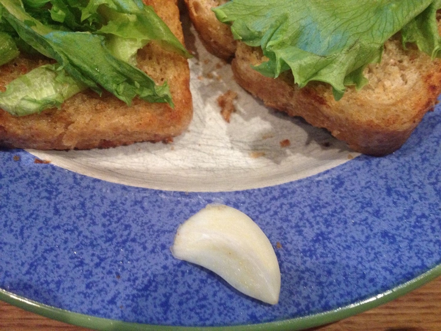 - Legg skivene over på benken/skjærefjøl, ta så et fed hvitløk