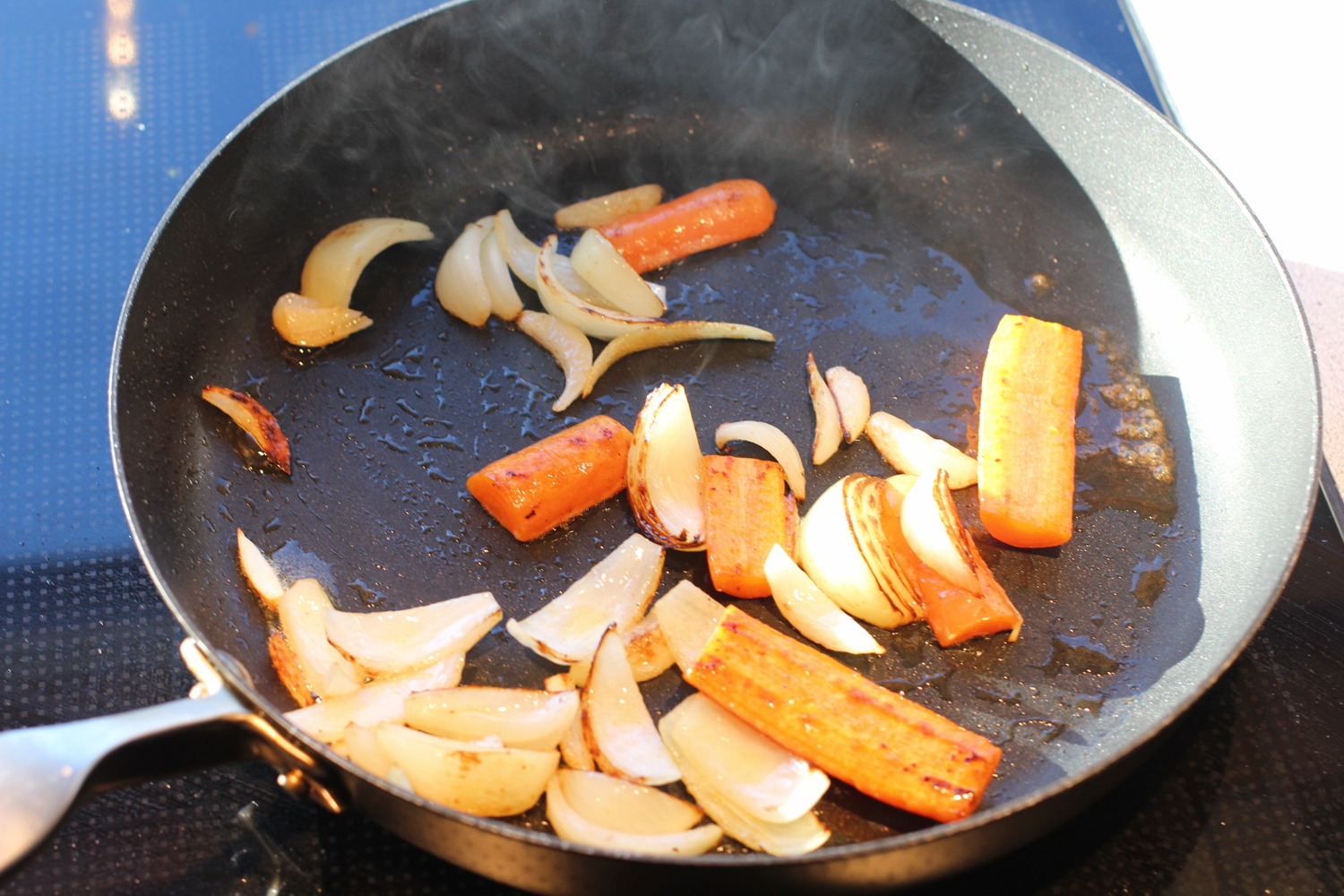 - Løken surres også mens skanken avsluttes i ovnen. La den bare bli blank og så vidt brun. Så tar du litt av den nedkokte sausen og blander den forsiktig inn i løken. Det ga en kjempefin smak som jeg tror jeg kjente igjen.