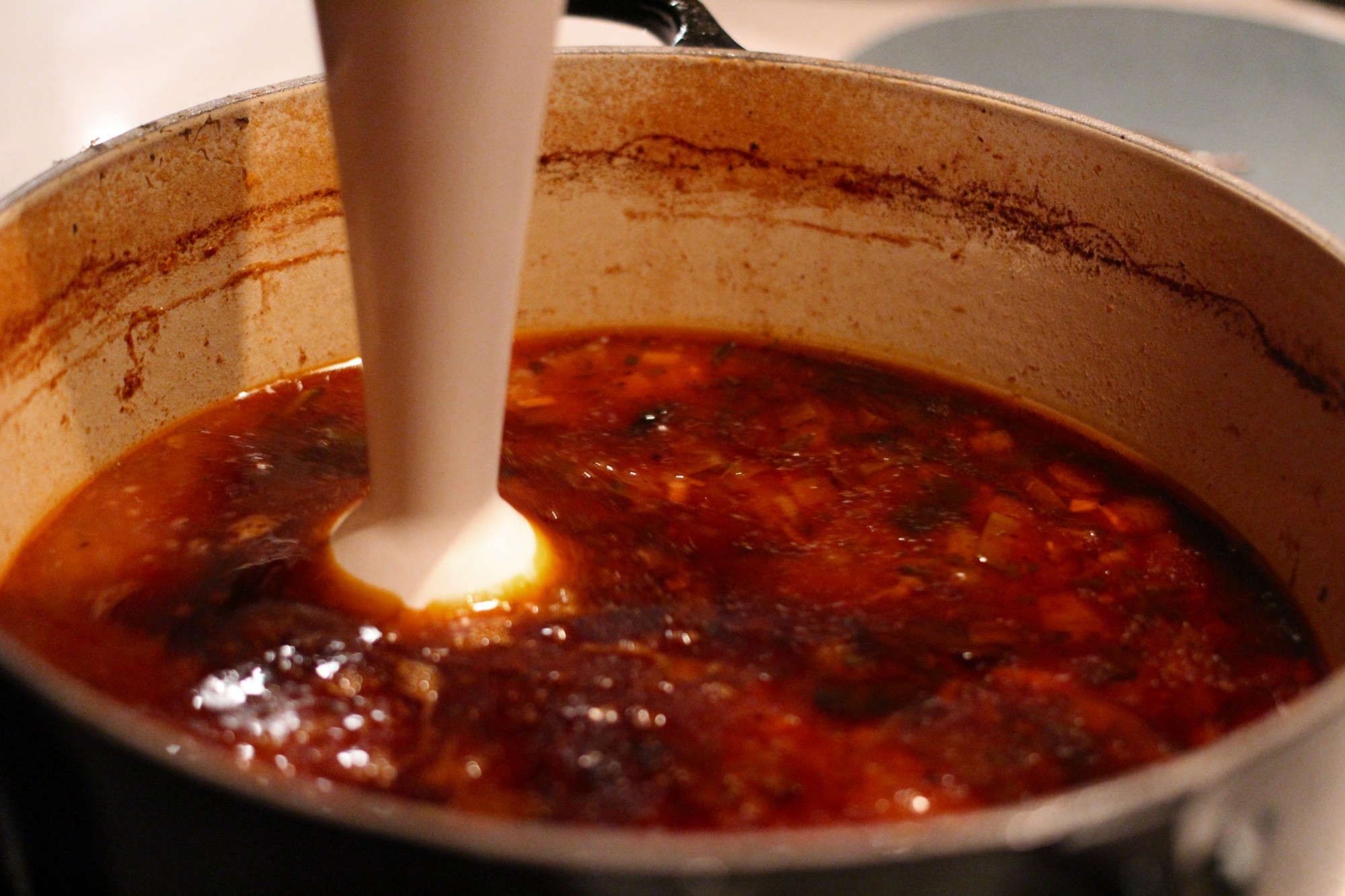 Det viktigste grepet jeg har valgt, er å mose den ferdigkokte krafta med grønnsakene med stavmikser – suppa blir litt mindre fin i fargen, men du får det igjen på smaken – mener jeg. Oksehaler finner du i frysedisken i mange dagligvareforretninger, da er halen ferdig kuttet.