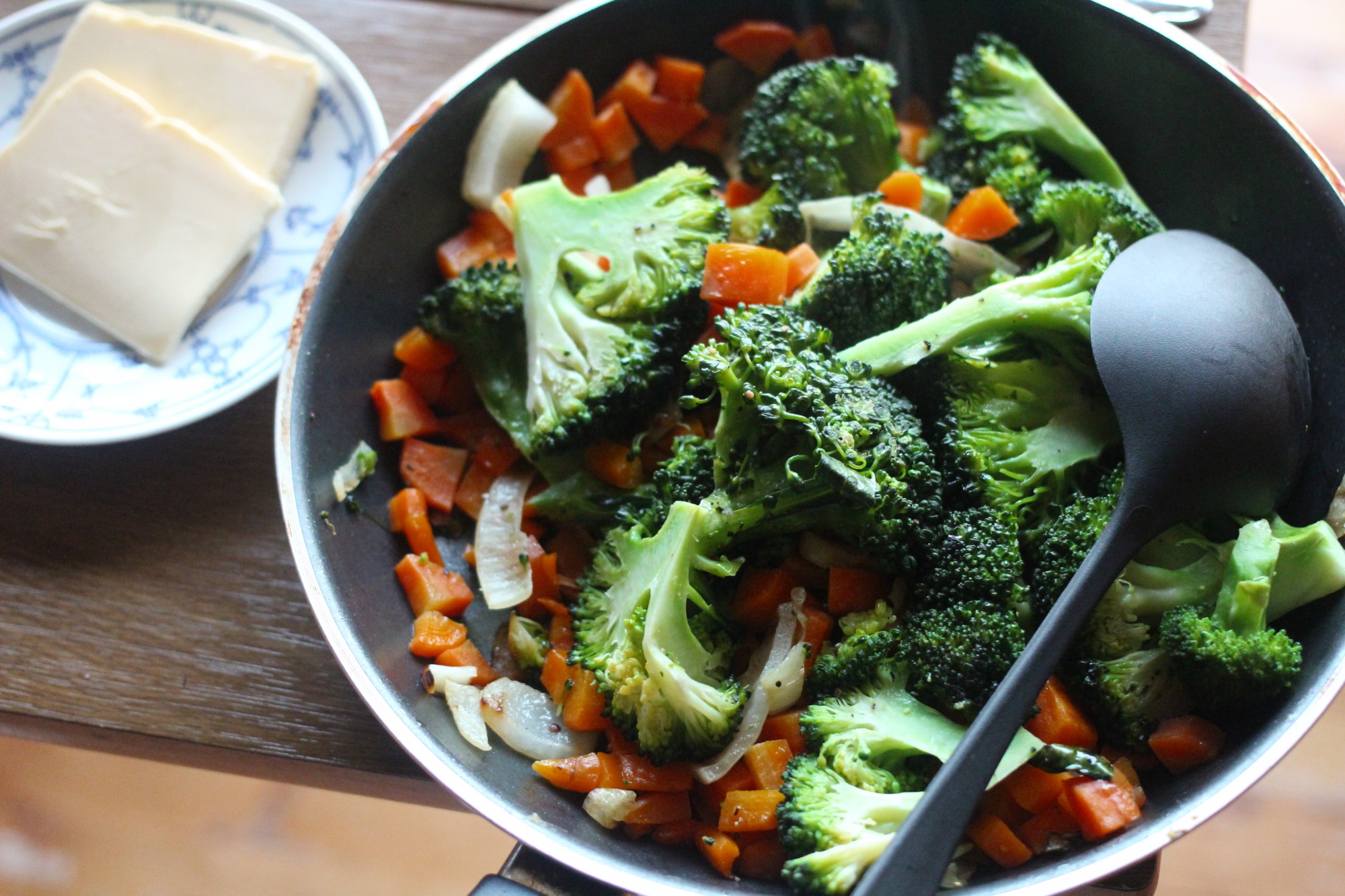 - Inne på kjøkkenet har vi samtidig surret grønnsaker i panna – da blIr det komplett!!