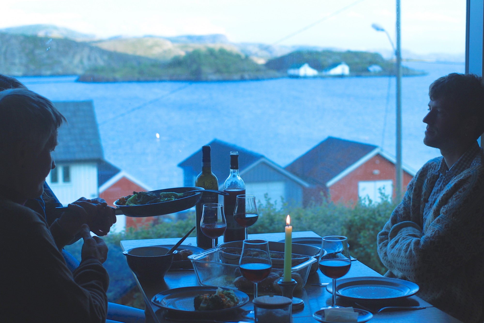 I tillegg til snekkeroppgaver på Mari og Joachims hus på Stokkøya, hadde jeg også ansvaret for matlagingen til arbeidslaget. En stor og flott Weber kullgrill sto til disposisjon (Selvsagt, ungdommen er foraktelig til gassgrill!). Disse kombinasjonene førte til relativt sene bordsettinger, gjerne i 22-23-tida…. men all maten ble godt mottatt.
