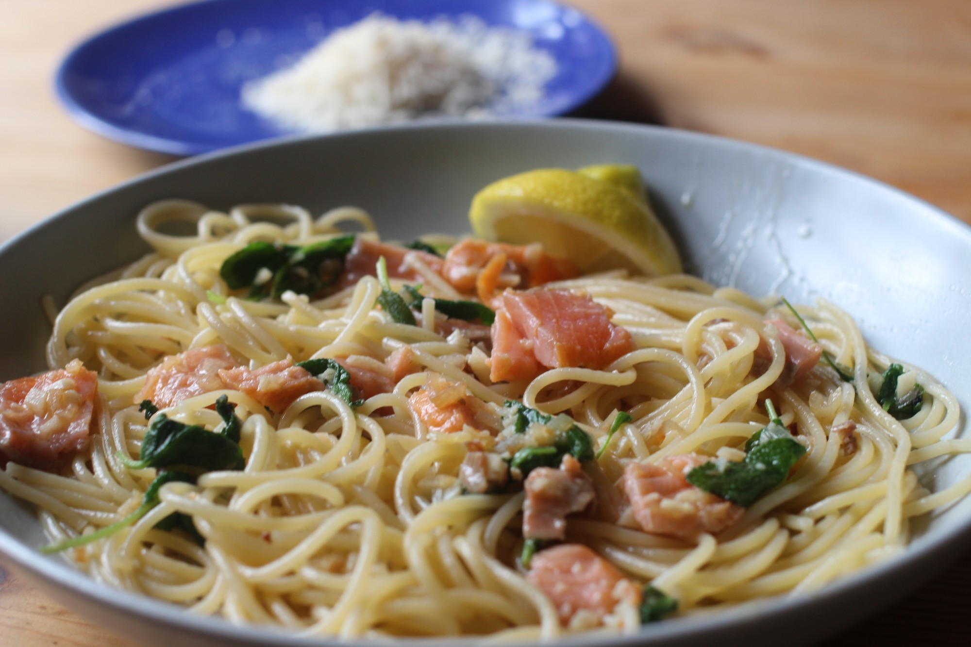 Det er bestandig greit med kjappe pastaretter med ingredienser som finnes i huset. Pasta med røykelaks er en slik mulighet – og skulle du ikke ha en liten røkelaksbit i kjøleskapet er det jo greie små halebiter å få ganske rimelig i butikken. Skulle tro at dette er en norsk pastavariant – men første gang jeg spiste det var faktisk i Terracina i Italia.