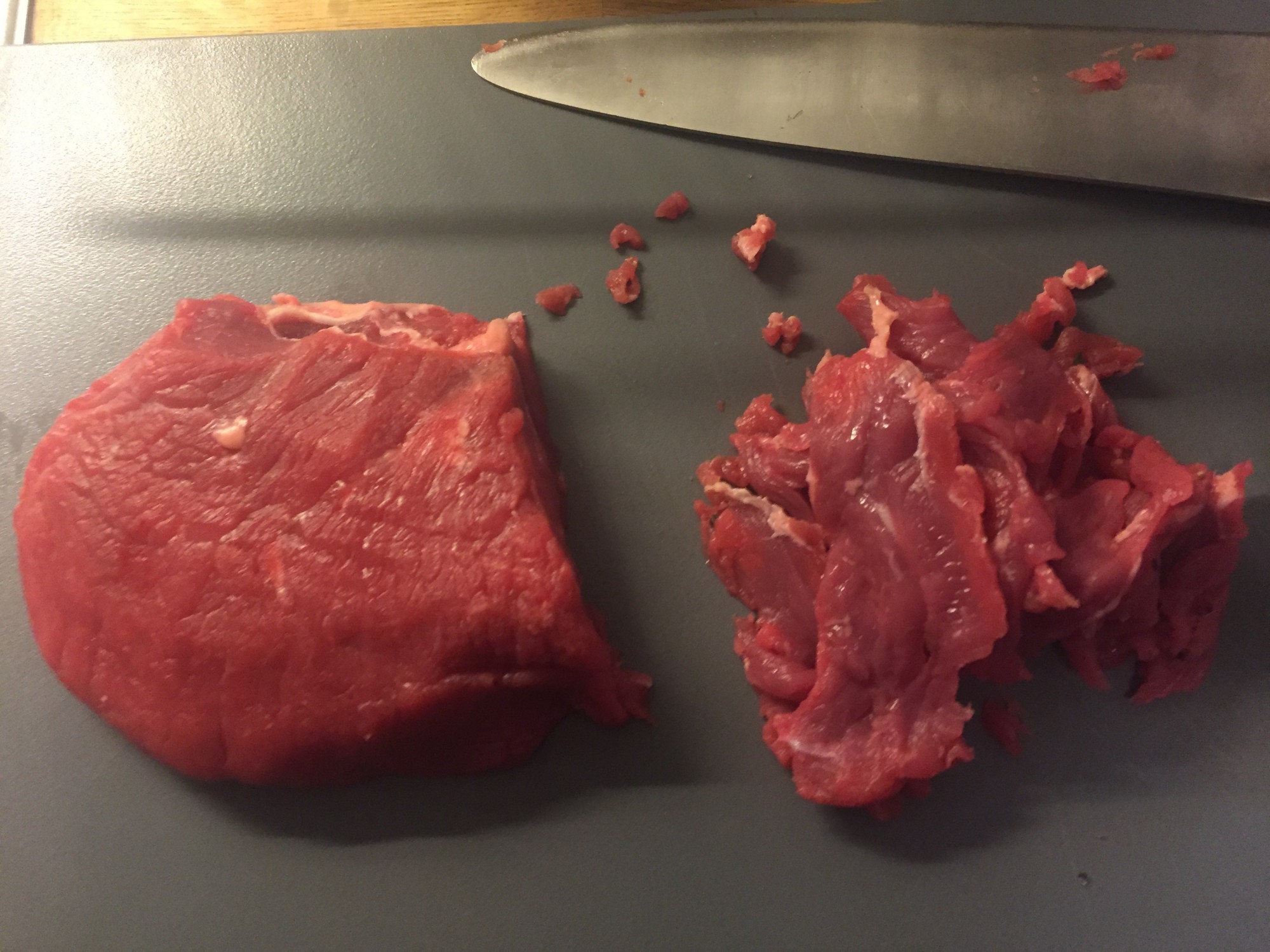Unngå fett, mørbrad eller ytrefilet er greie stykker. - Hold deg unna malt kjøtt, det blir best når du snitter/hakker selv med skarp kniv. Skjær først tynne skiver, så på tvers en veg og så 90 grader motsatt.
