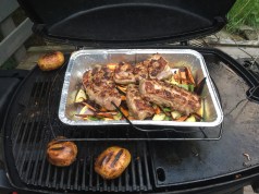 La stå i grillen til kjernetemperaturen er 55 grader, da tas forma ut og dekkes med folie for noen minutters hvile.