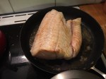 - Starter med å brune fileten lett i stekepanna etter å ha pepret og saltet, bruk smør og solsikkeolje – 2-3 minutt på hver side.