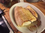 - Så inn i ovnen i ei form, stenk litt sitron over fisken og steketermometer settes i den tykkeste delen. Over/undervarme 150 grader.