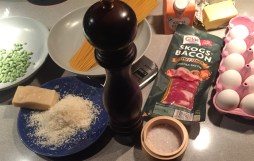 Har jo ikke hatt pastaklassikeren carbonara på bloggen, ble påminnet dette da jeg forleden fikk en god carbonara med rå eggeplomme av Mari på Stokkøya. Her er min versjon: